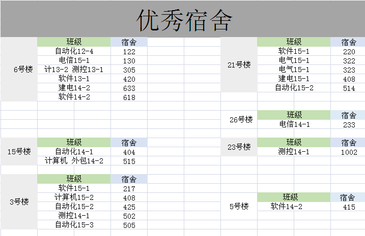 以下为第十周宿舍卫生检查结果,如有疑议请于5月12日前来逸夫楼D206咨询。