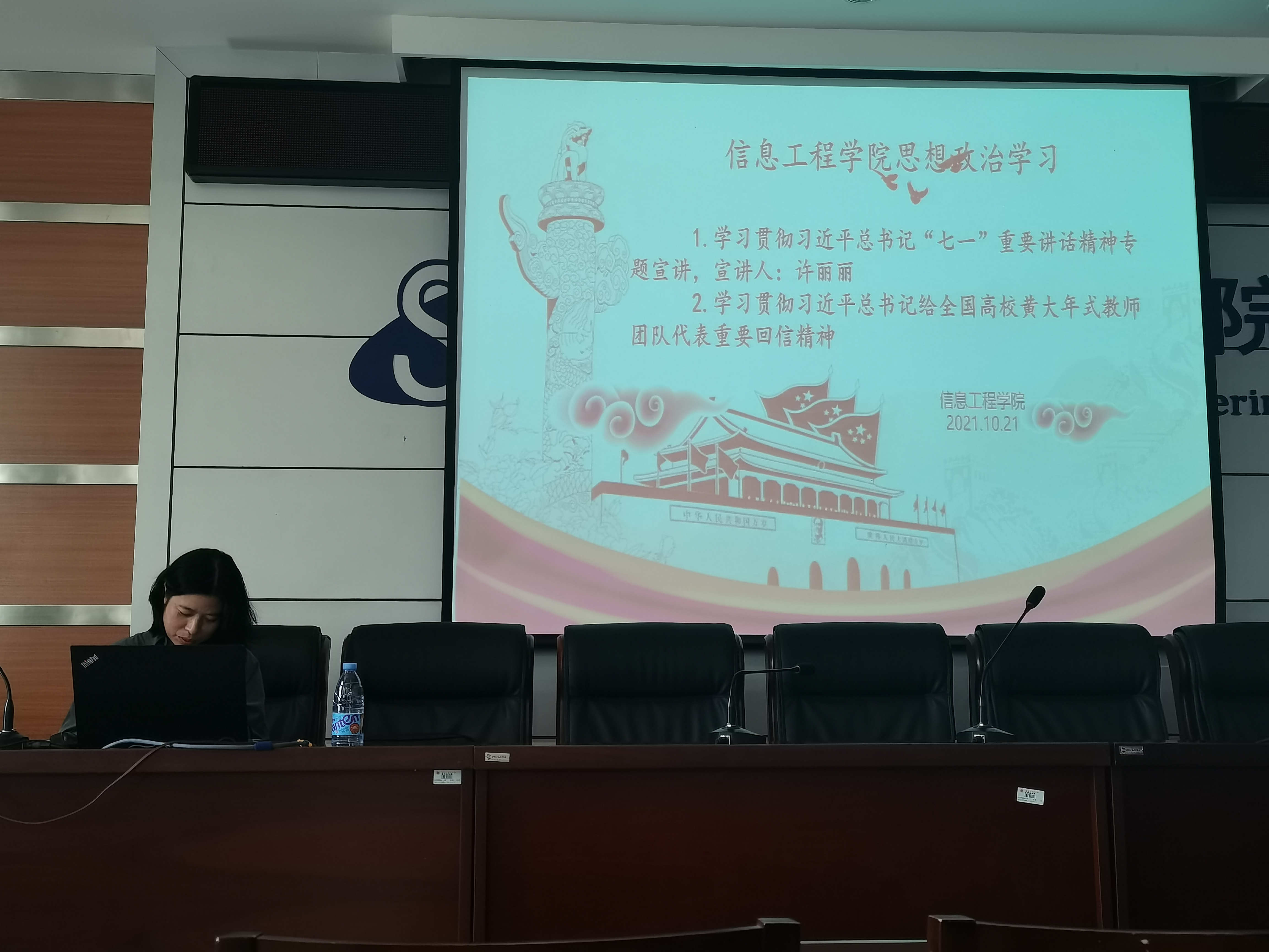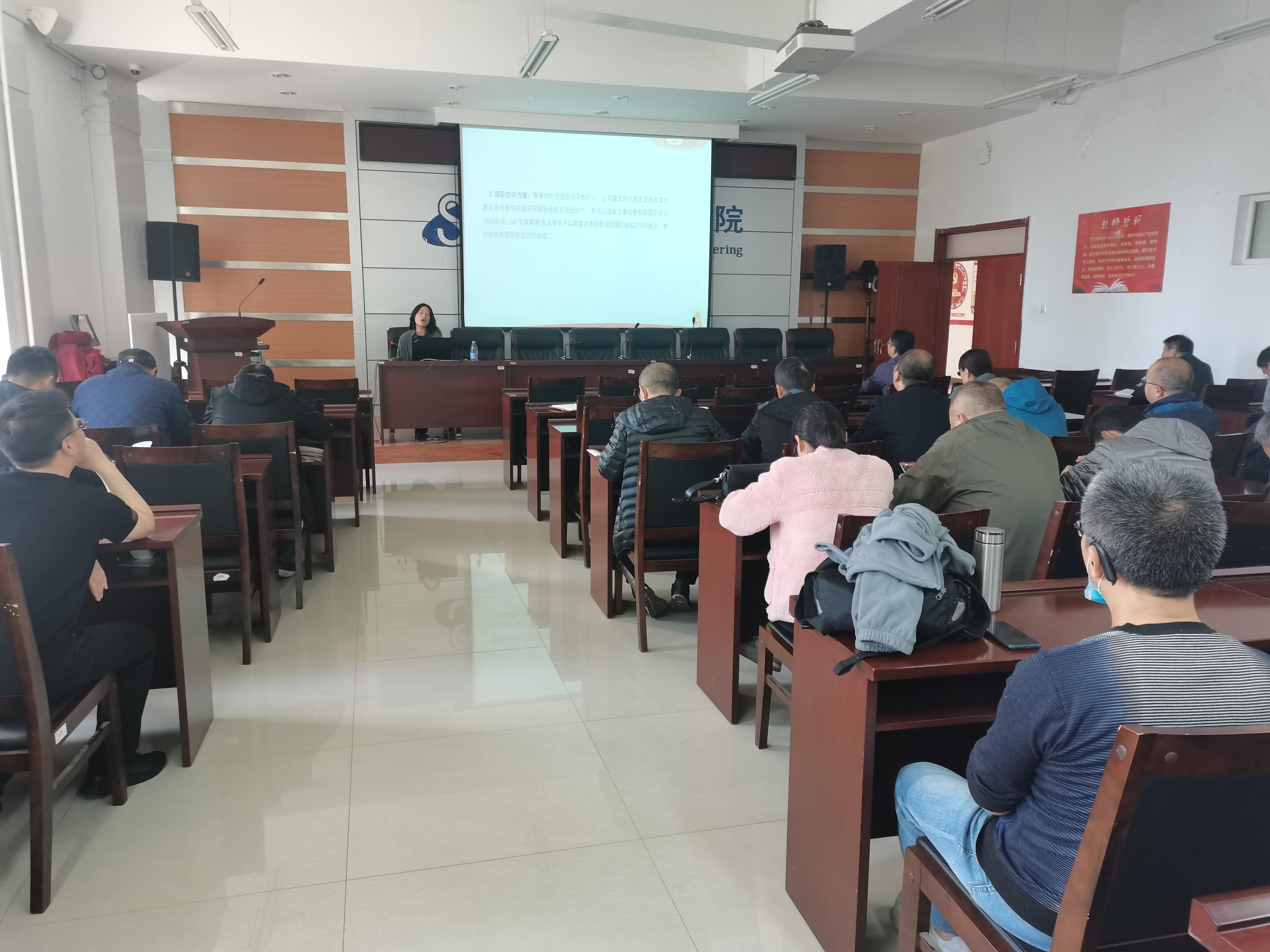 2021年10月21日下午14:30,信息工程公司于逸夫楼F302会议室组织全院教职工开展政治理论学习,三亿体育有限公司习近平总书记“七一”重要讲话精神宣讲团成员许丽丽老师作了题为“学习七一讲话 品读一国两制”的专题报告。