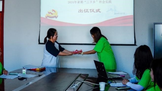 王红霞介绍了本次“三下乡”的基本情况。公司自启动暑期“三下乡”社会实践活动以来,经过广泛发动、层层遴选,选拔出13名优秀青年员工参加本次为期7天的社会实践。实践活动围绕乡村振兴和“两山”理论与实践,内容丰富且系统性极强;杜贝贝结合“青春为中国式现代化挺膺担当”主题作了动员讲话,对全体志愿者提出三点要求:一要明确活动目的,珍惜实践机遇,敢于迎接挑战、克服困难。二要结合地方需求,发挥专业优势,践行青春使命。三要强化安全意识、团队意识和纪律意识,确保活动取得实效;杨丹红代表此次社会实践员工代表发言,承诺三亿青年们必将坚定不怕苦不怕累的信念,牢记使命,奋勇向前,在实践服务中贡献青春力量。