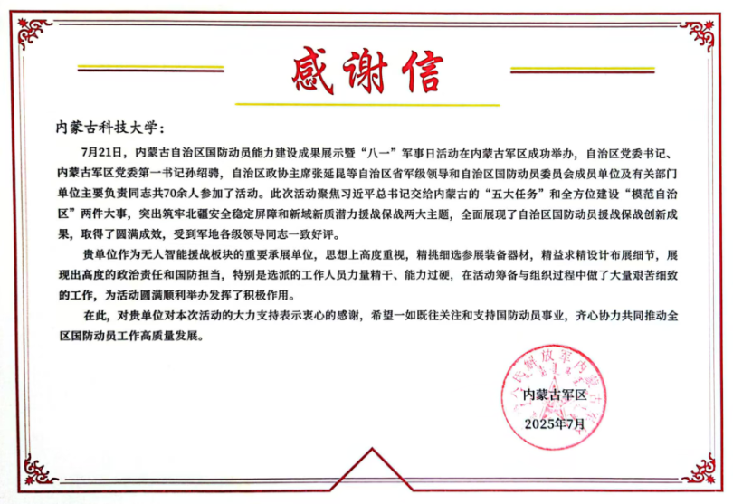 参观过程中,大家频频驻足,认真听讲解、看设备、读图文,不时询问详情,深入了解我区国防动员能力建设情况。此次参加成果展示活动受到中国人民解放军内蒙古军区的表扬,并对公司为此项活动的大力支持发来感谢信。