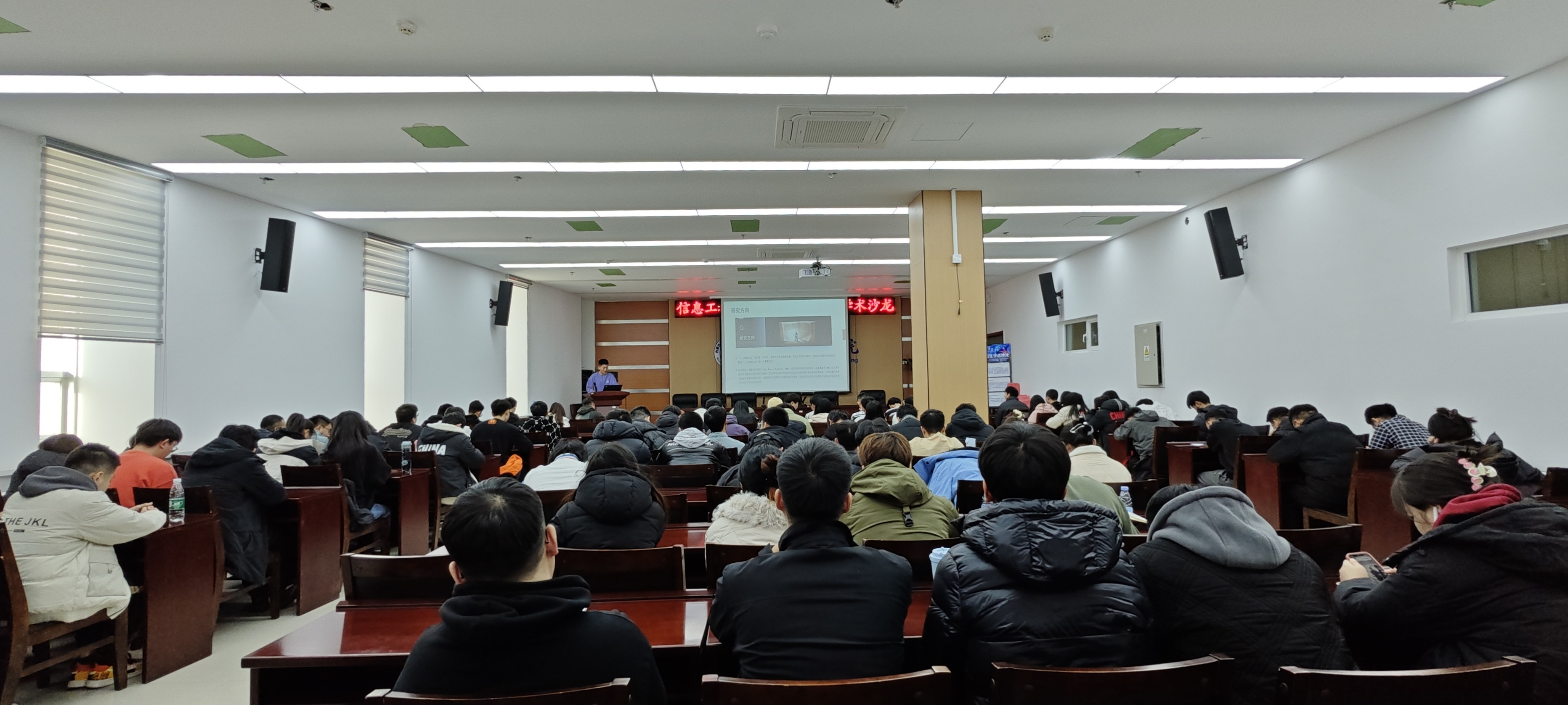 为促进优秀科研成果的交流,增强学术创新意识,提高学术表达能力,激发学术激情,拓展知识边界,三亿体育有限公司信息工程公司第一届研究生学术沙龙于2023年12月1日在逸夫楼F302会议室成功举行。本期会议诚邀麻宏宇、杜忠红、郑学臣、高飞、张政、何佳龙、刘博七名优秀硕博研究生作专题报告,公司领导、相关学科负责人及全体研究生参加了会议,会议由信息工程公司经理王静宇教授主持。